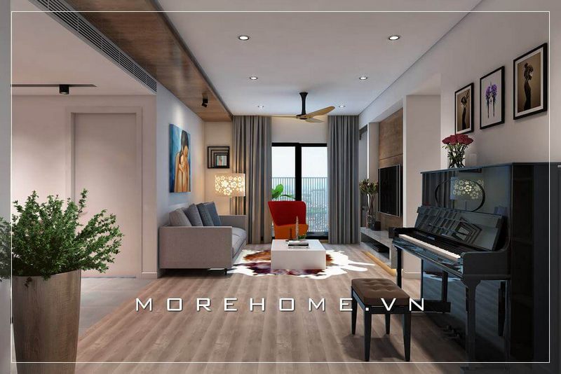Lựa chọn phong cách thiết kế hiện đại cho căn hộ chung cư nhỏ gọn thêm thoáng đãng thoải mái với sự vuông vức, gọn gàng của mỗi đồ nội thất.