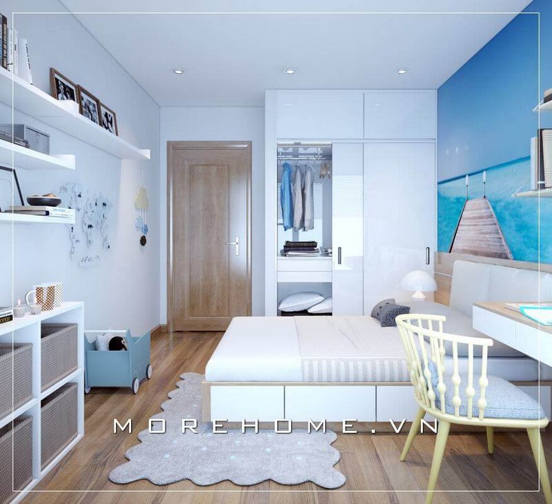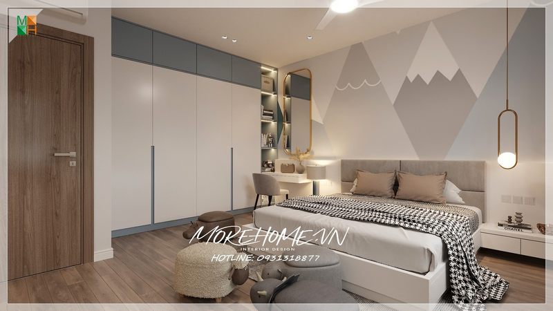 Thông qua thiết kế tủ quần áo âm tường với tone màu trắng chủ đạo cùng nhiều ngăn tiết kiệm diện tích, không gian căn phòng sẽ trở nên hiện đại và có thể mang lại sự tiện lợi, tiện nghi cho gia chủ.