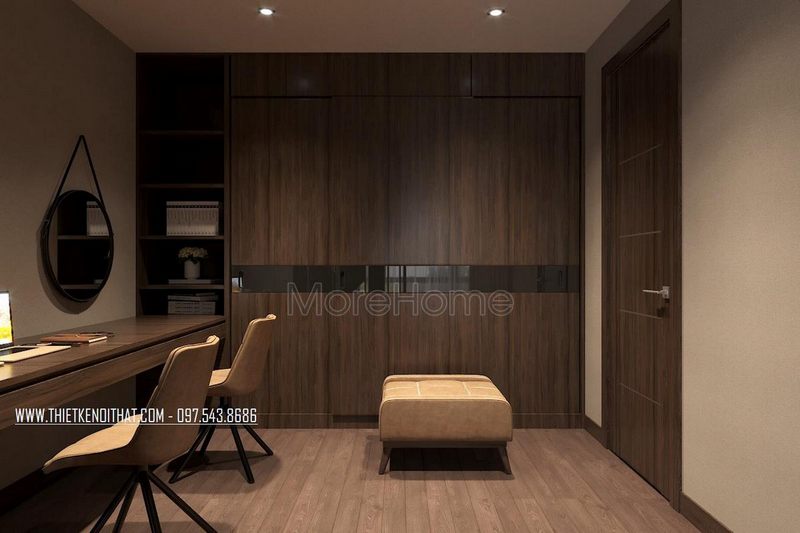 Cửa gỗ công nghiệp hiện đại với gam màu nâu trầm, tạo nên sự sang trọng, cuốn hút và tinh tế cho không gian phòng ngủ.