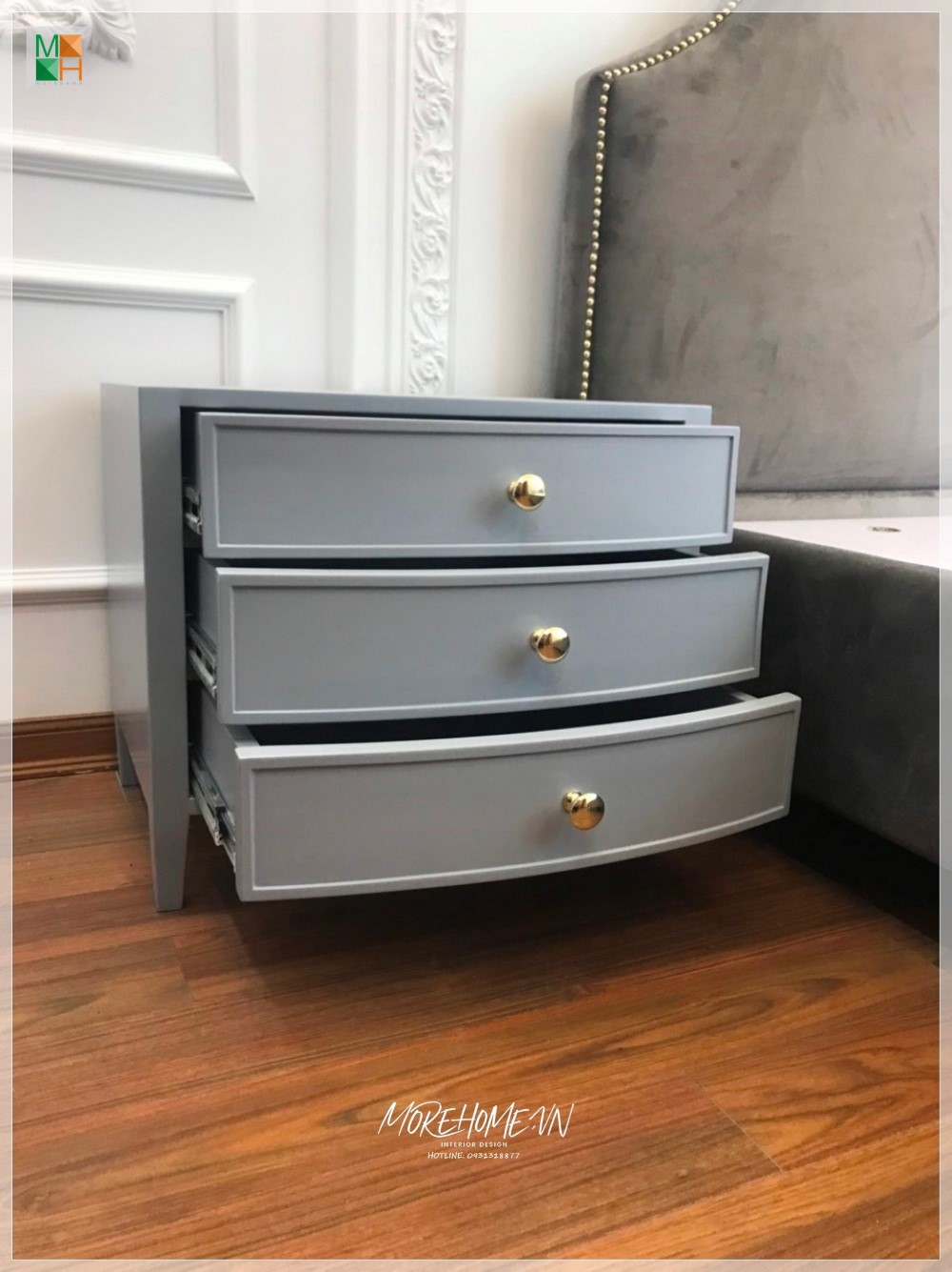 Chúng tôi sẽ thi công một tab đầu giường gỗ tự nhiên màu xám, để cung cấp sự tiện lợi cho người sử dụng, cất trữ những món đồ gọn gàng và tạo ra một không gian thẩm mỹ.